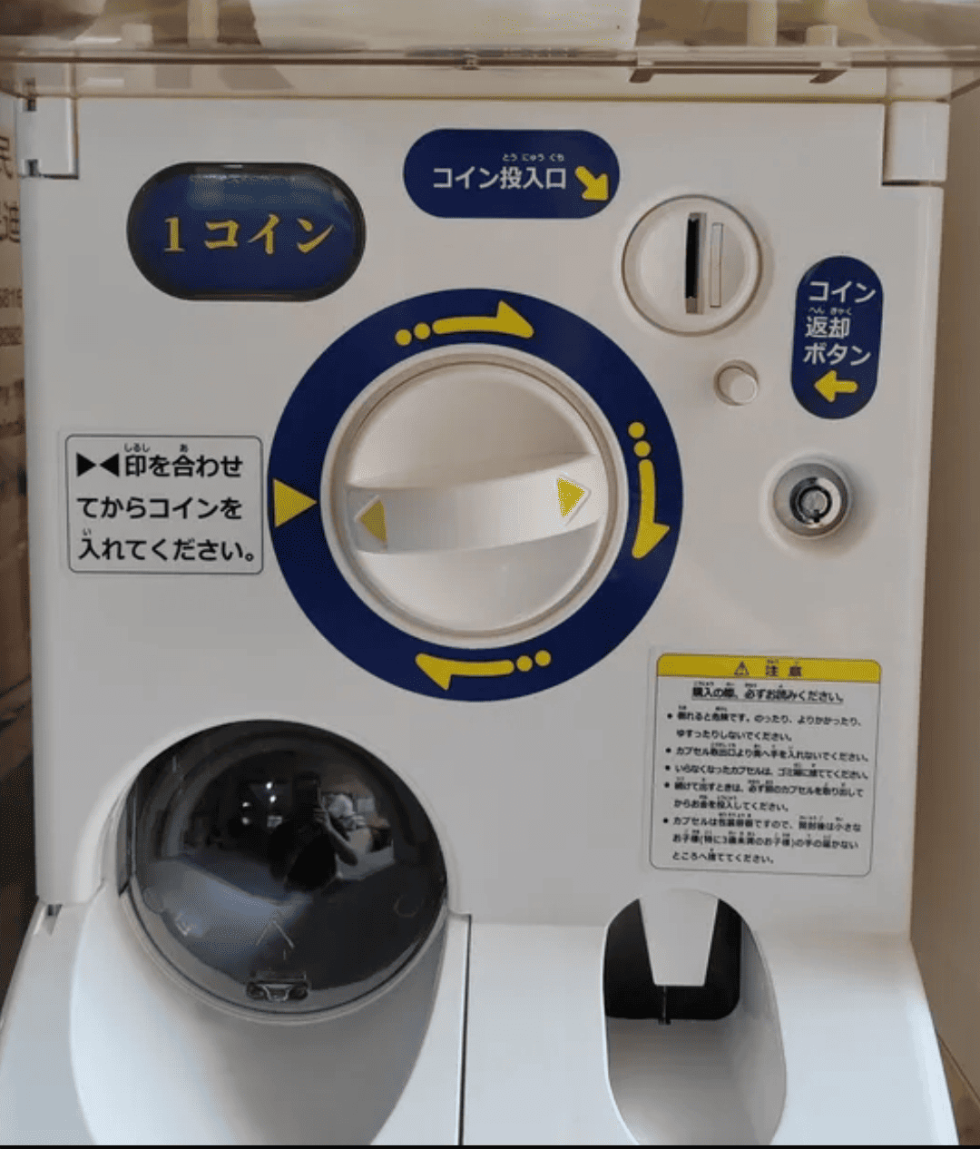 Zoom sur le mécanisme extérieur d'un distributeur gashapon